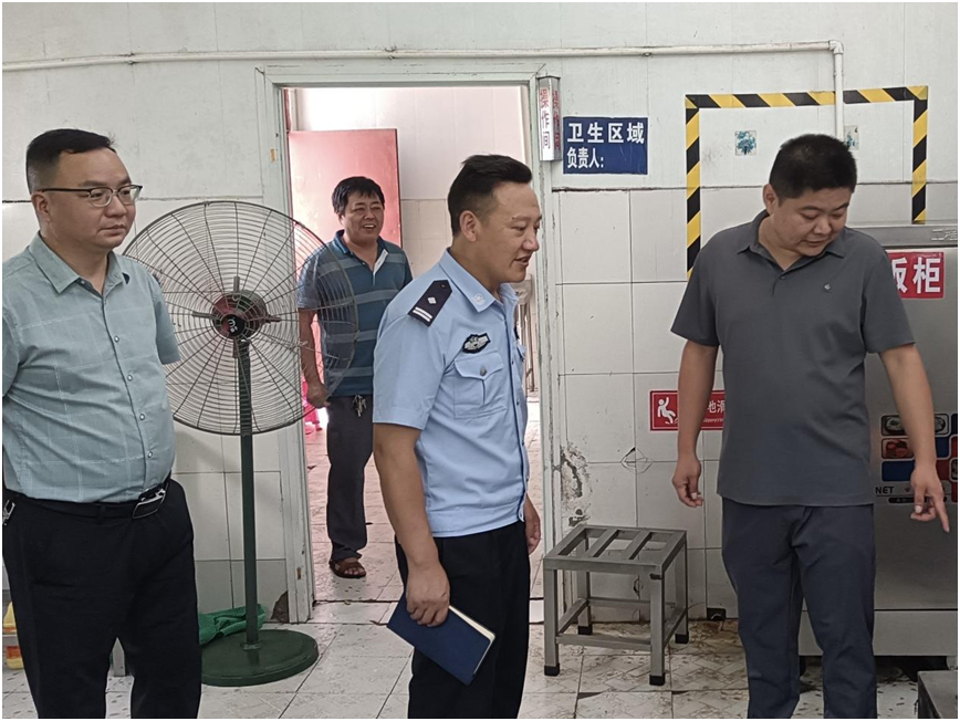 隐患排查+立行立改,让风险“亮红灯”。检查组化身“安全啄木鸟”,深入消防设施区、食堂等关键阵地。在消防角,民警紧盯灭火器压力、有效期,确保这些“灭火卫士”时刻严阵以待;踏入食堂,从食材储存的保鲜规范、加工流程的卫生标准,到环境消杀的细节要求,逐项“扫描”,紧盯“舌尖上的安全”,当场“揪出”卫生死角、设备隐患,当场反馈并督促校方立即整改,以“零容忍”态度消除安全隐患。